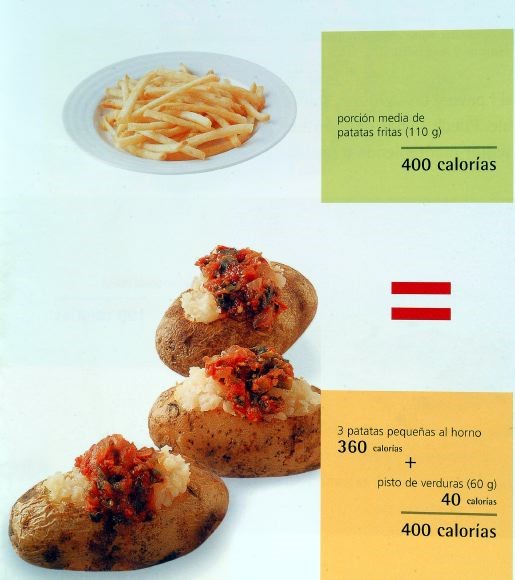 Sustituye las patatas fritas por patatas hechas en el horno o el microondas acompañado con salsa de yogur o verduras asadas.