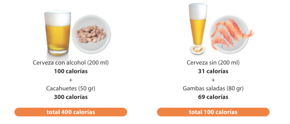 Aperitivos: sustituye la cerveza y los cacahuetes por cerveza sin alcohol y gambas cocidas saladas.