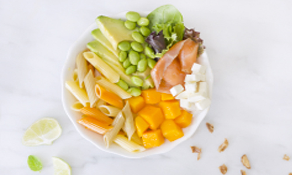 Receta Healthy Bowl de plumas, aguacate, salmón y edamame