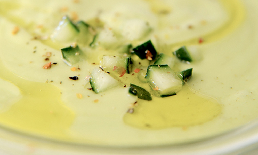 Gazpacho de aguacate, yogur y pepino